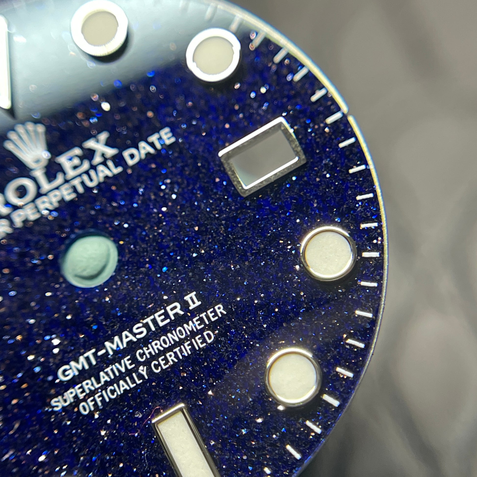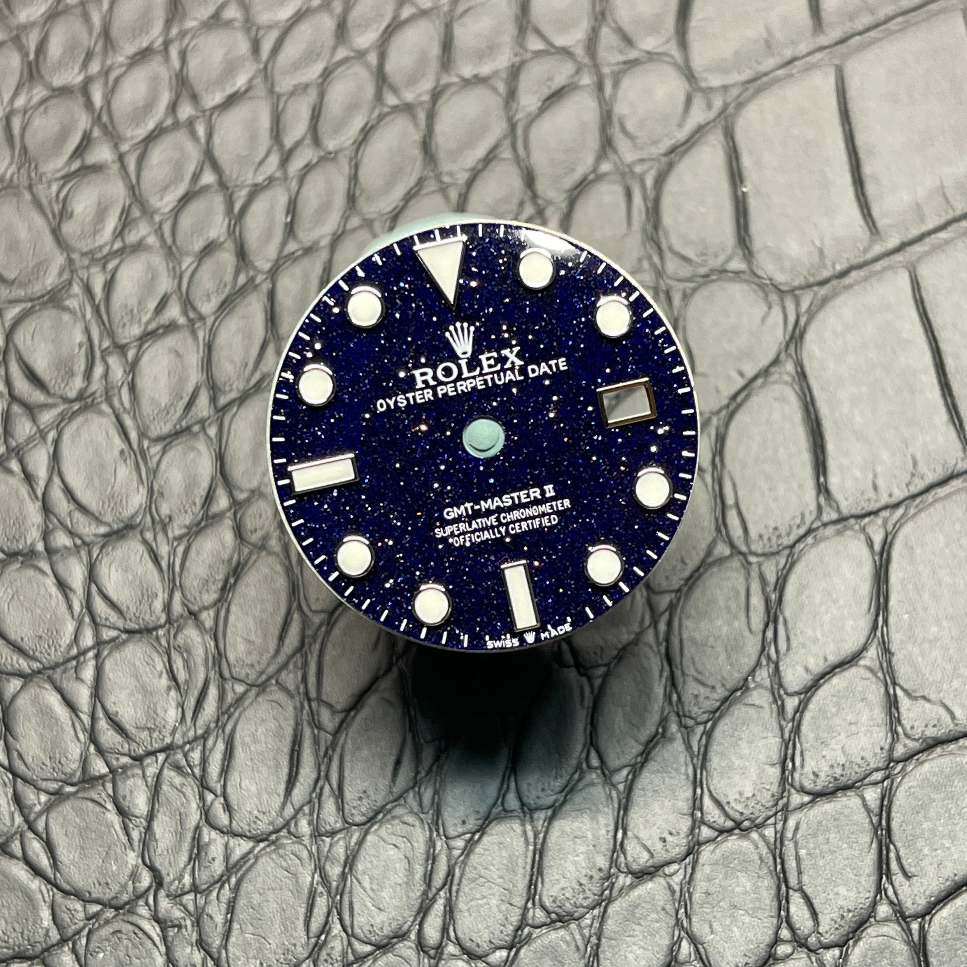 Custom Handmade Adventurine Blue Dial for GMT Master II. Compatible with Rolex 3186 movements.